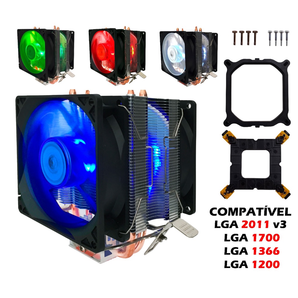 Cpu Cooler Processador 120mm Led Universal Intel Amd Fan Duplo x79 x99 Am3+ Am4 Shopee Brasil